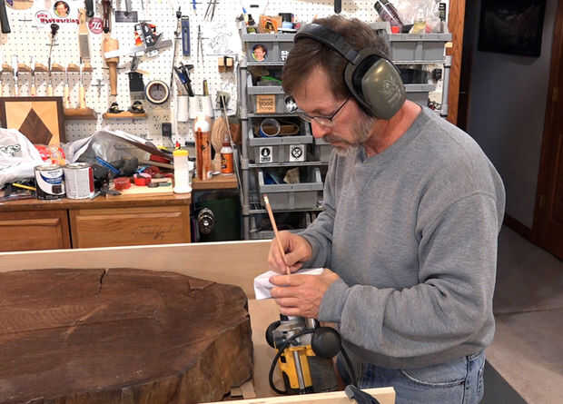 Me envolvió un trozo de papel alrededor de la base del router y usa un lápiz para marcar donde estaban los agujeros de montaje. También marqué donde la broca de fresadora vendría a través de la plantilla.