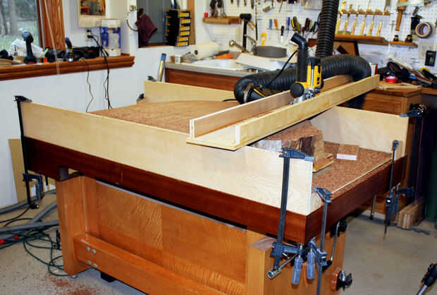 Es importante que la pieza que se está distribuyendo en es segura y que no se mueva mientras que se está distribuyendo. En mi caso la losa fue 42" de largo y 5" de espesor, así que no preocuparse que mover! Si estuviera trabajando con un pequeño trozo de madera yo le sujete en su lugar de alguna manera que no interfiera con el proceso de acoplamiento.