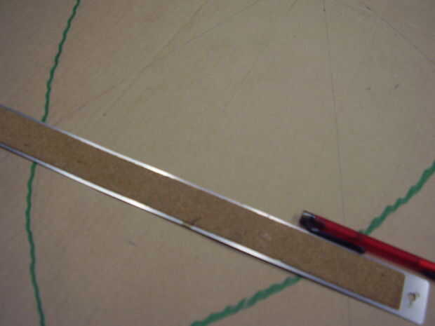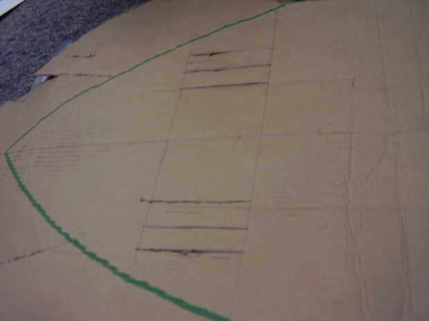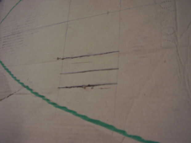 Medición desde la parte superior de una parte inferior del óvalo interno, mide 9" y hacer una marca y luego a 13" y haga una marca. Repetir desde la parte inferior. En estas marcas, hacer líneas horizontales. en cada una de estas líneas haga marcas en 4" y 5" medición de la línea central. (línea vertical principal) luego conecte estas marcas entre las 2 líneas y las líneas de fondo 2. Ver cuadro de orientación. (imagen tiene tres ranuras pero usted realmente sólo necesita dos) Uso que del cuchillo para cortar estas líneas, creando ranuras.