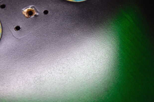 Después de esta pieza fue reparada, fue rociado con laca (cinco capas). El acabado resultante es un semi-gloss con una buena cantidad de pebbling y la peladura de naranja.