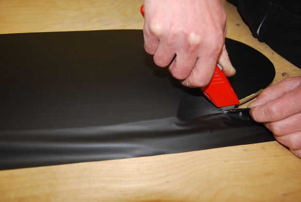 Una vez que el vinilo quede al ras con los bordes, estás acabado! Puede dejar aquí o agregar diseños personalizados.