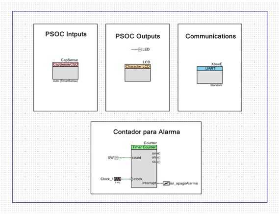 - LED: Información un aviso visual en ciertas tareas. Se trata del LED del PSoC