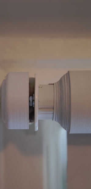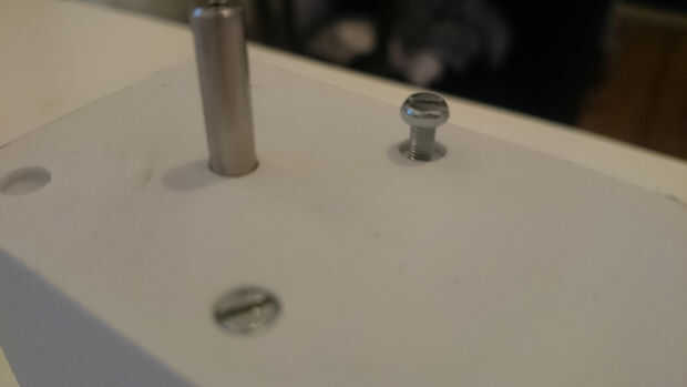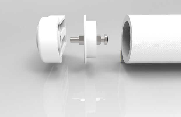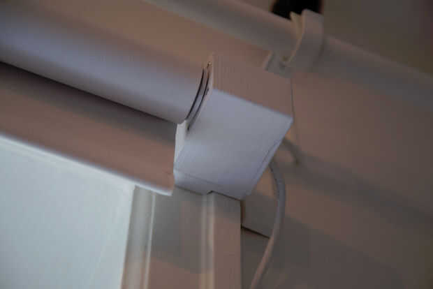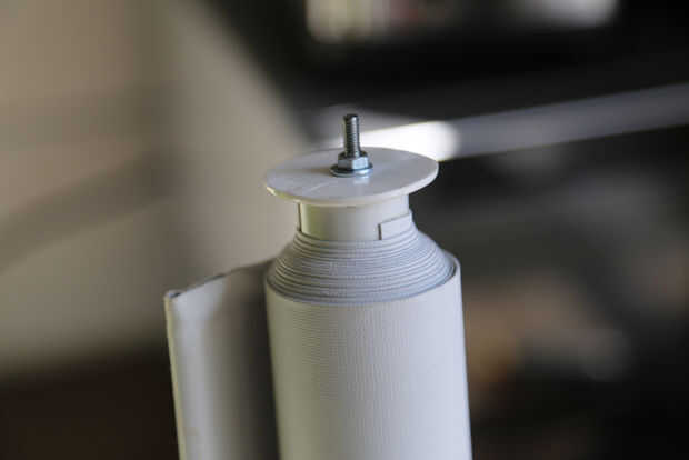 4. en el otro lado del eje es un inserto de plástico de ikea. Mantener, pero haga un orificio en su centro y empujar a través de un tornillo. Este tornillo se van dentro de la Wall_mount y servir como nuestro árbol. Encontrar un tornillo que encaja en el agujero de la Wall_mount. Debe proporcionar cierta fricción al girar. Si no tienes la suficiente fricción en este punto las persianas se Desenrollen ellos mismos en la posición superior cuando el motor se apaga. Demasiada fricción y el motor no ser capaces de rodar para arriba las persianas. Puede poner bandas de goma o papel alrededor de su tornillo para aumentar fricción si es necesario. (inicialmente puse un rodamiento de bolas mini en mina que permitió mi persianas acelerar cerca de velocidad de la luz cuando se apaga el motor y quite los soportes.).