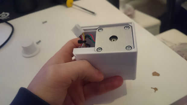 Ahora quite la carcasa del motor y el motor, tenemos que probar todo antes de empezar a conectar cables largos a nuestras paredes.