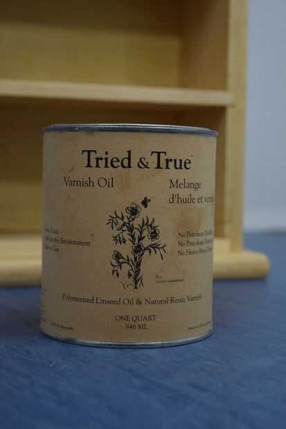 Aceite de barniz tradicional es mi tipo favorito de acabado para piezas de muebles de interior. Mi marca favorita de barniz aceite es probado y verdadero. Es completamente no tóxico, no huele mi casa, proporciona buena protección y se ve hermoso.