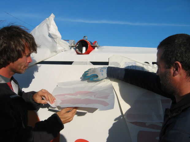 Puede también pelar la hoja pesada mientras se aplica el adhesivo a la superficie.