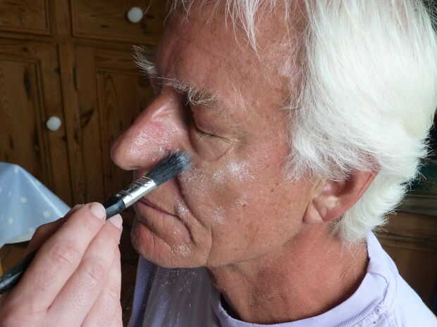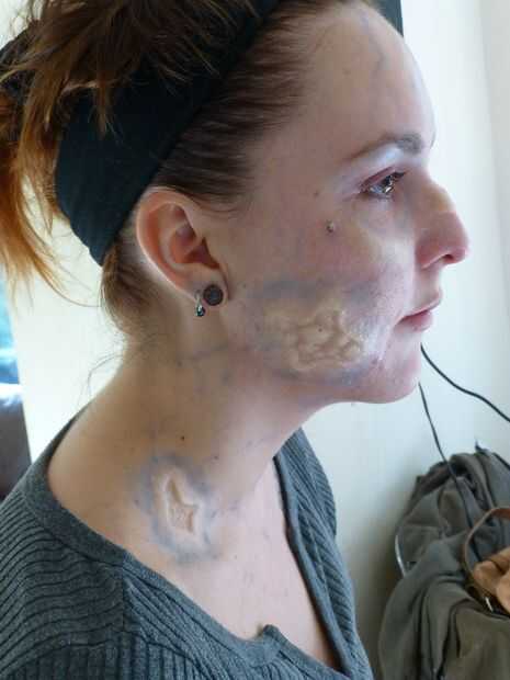 * Cualquier otras transferencias deben colocarse sobre la cara y el cuello utilizando los mismos pasos que siguió antes de pintar. (TENGA EN CUENTA QUE TODAS LAS TRANSFERENCIAS PUEDEN SER PREPARADAS EN EL PAPEL DE TOBOGÁN DE AGUA, 10 MINUTOS ANTES DE LA PUESTA LA HACEN PARA AHORRAR TIEMPO