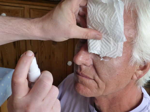 * Cubrir los ojos con una barrera de papel toalla y spray sellador spray sobre las transferencias en la cara y la piel circundante. Esto proporcionará una barrera contra la humedad y una superficie uniforme para pintar.