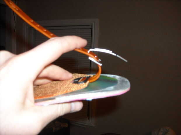 El extremo de la piel tiene un clip que se fija a la punta del esquí de fondo. Ponga el extremo de la pinza en el extremo inferior de la estación de esquí y presione firmemente hacia abajo. Desea que este clip que allí apretado para que la piel no sale.