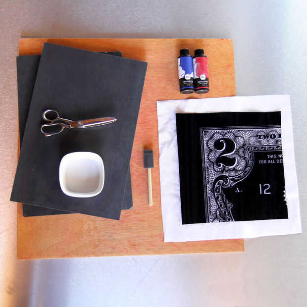 Algunos Inkodye del gancho agarrador y escoger la imagen perfecta. Entonces encuentra un cepillo, tazón de fuente, tijeras y una superficie de trabajo.