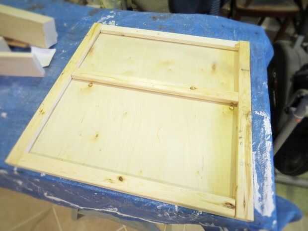 Va para una mirada no-ver-sujetadores, cortar las piezas de la estructura de 1 x 2 y había pegado en la cara con pegamento del gorila. Asegúrese de meter un trozo de tela o fieltro en la cara de la madera contrachapada al amarrarla para mar no la madera bonita que compré en.