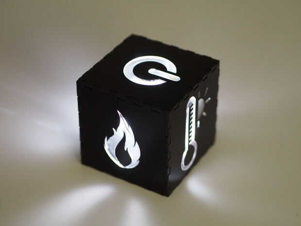 El cubo está normalmente apagado para ahorrar energía y no reconoce comandos ni orientación. Por tener el icono de encendido hacia arriba y agitando el cubo, el cubo ahora está despierto, parpadeará la luz interior que brilla a través de los iconos y reconocerá que lado es hacia arriba para permitir que otros modos para acceder. Haciendo girar el cubo mientras su sobre y el lado de alimentación, un divertido display arco iris se enciende y apaga.