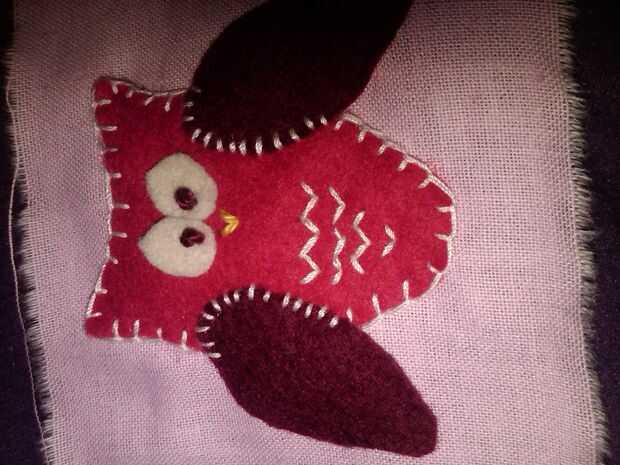 Para crear un aspecto plumoso, utiliza algodón de coser y creado un patrón de zig-zag a través de la barriga de la lechuza