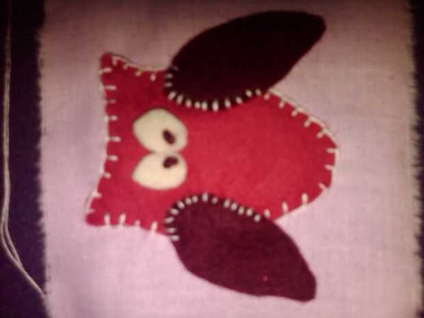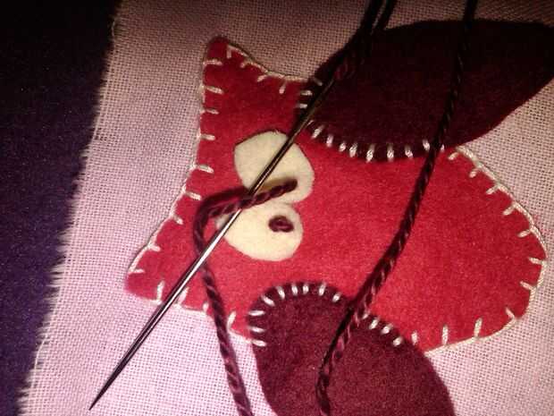 El pico es una simple forma de V, usando seda del bordado, el ensamblar en la base de los ojos.