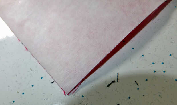 Utilizando una cuchilla giratoria (para la exactitud) corte a lo largo de los bordes del papel, luego cortar el papel en 8" piezas anchas. Cuando se corta, "shave" sólo un poco fuera de los bordes del papel – hace un poquito más pequeño que las dimensiones, pero si le da una borde que eres menos propensos a tener la pega de la cuchilla de corte en él (me preguntan cómo sé esto).