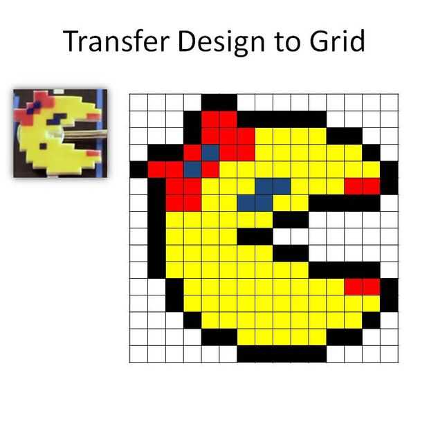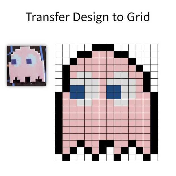 Les dejo aquí dos rejillas, una para Ms PacMan y uno de un fantasma. Basé las rejillas en las imágenes que encontré en línea en http://www.etsy.com/view_listing.php?listing_id=7576265 (apoyos a pixelparty!) Hacer una búsqueda de imágenes de google para el arte de 8 bits ver un montón de otros personajes.