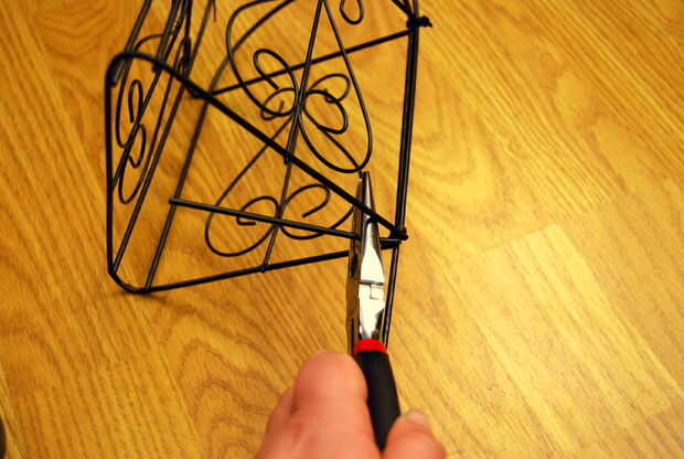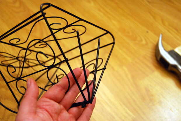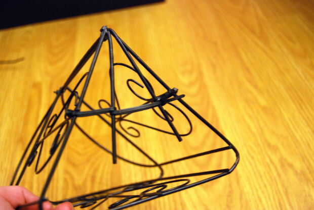1. doblar en las "clavijas" que iría en el suelo (usando pinzas o las manos, lo que funciona mejor para usted) por lo que forman una cuña espaciados uniformemente dentro del triángulo. (Véase las fotos).