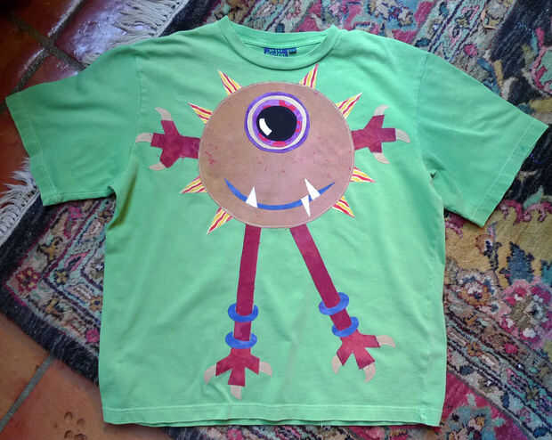 Aquí es una muy antigua camiseta semi del esquileo (favorita) que tuve sin problemas coser la seda de peces de la pantalla a. Esto era un pescado de mi hijo y tomé la foto antes de dejarlo ir. No que grande - la magia de photoshop hizo mucho más grande que la vida.