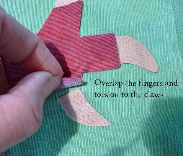 Intentar cortar todo lo que vas a tener múltiplos de (como manos y pies y garras) con la tela doble. De esta manera usted tiene simetría y ahorra tiempo.