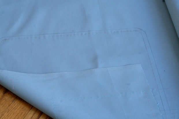 Ya que hice una bolsa, las piezas eran small-ish (los paneles son aproximadamente 12 "x 17") y no lo hizo separar las piezas de la pieza más grande de la tela. Lo hice para que podría utilizar un gran bastidor para acolchar y para mantener los bordes sólidos para la construcción final. El desgaste del empalme y acolchar causará desgaste en el borde de la tela de forro y es mejor recorte las partes después de que el acolchado se realiza.