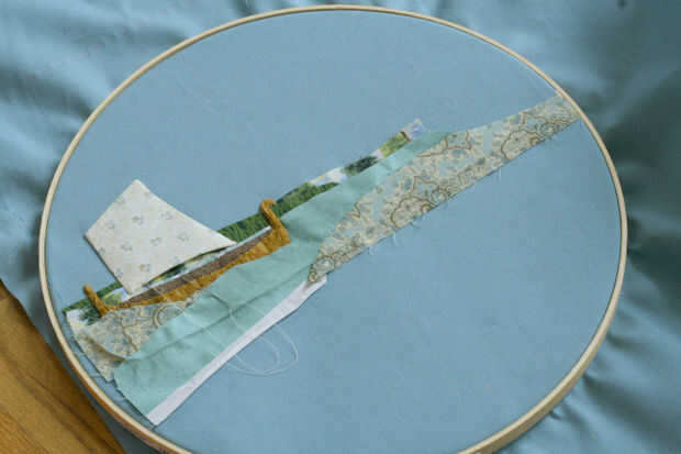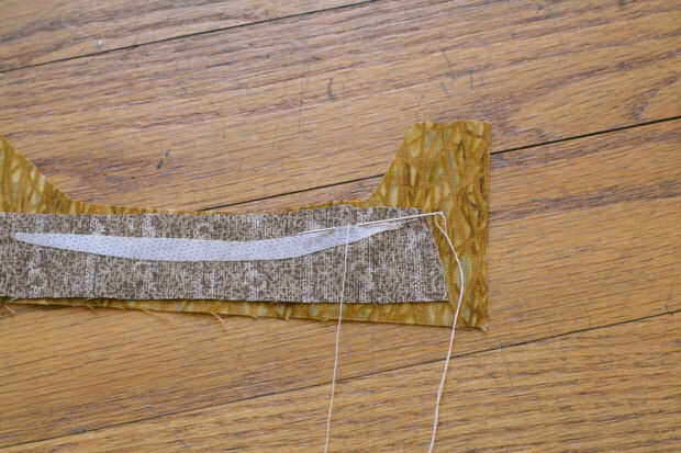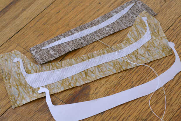 1) Junte el piezas derecho contra derecho. Cuidadosamente mano cose las piezas juntas que empareja los bordes cortados de la entretela.