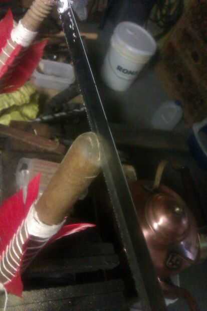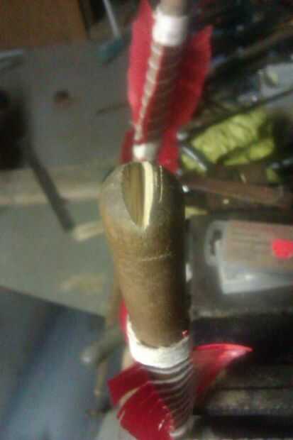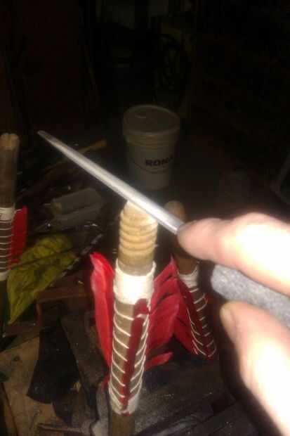 después de usé la sierra y un archivo triangular poner algunas muescas en los extremos de mis jabalinas.
