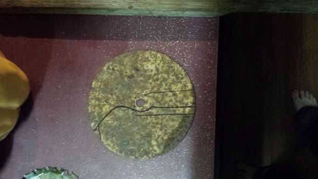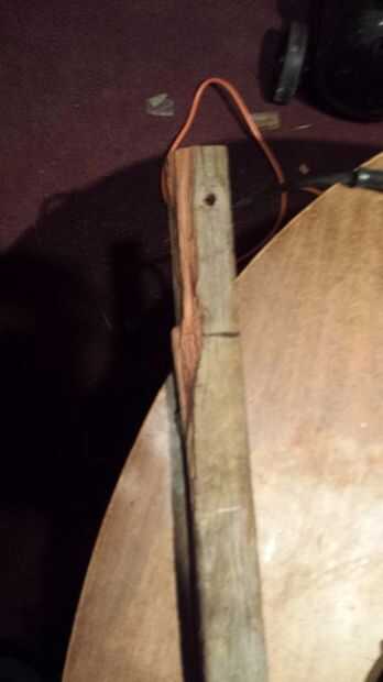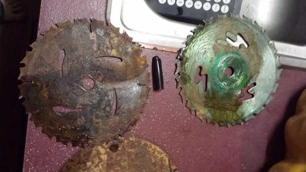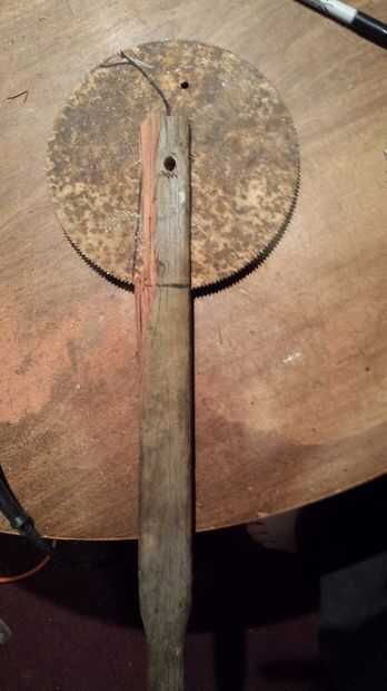 Tomó un viejo mango de barril de rueda, inserta la hoja de sierra y se deslizó un perno a través para asegurarlo.