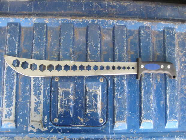 Por lo tanto estaba parado para ello una Katana con una serie similar de recortes hexagonales serían valiosa para tomar abajo de vida silvestre de Zombies/mutante y como complemento de un conjunto de herramientas que se utilizan para publicar proyectos DYI apocalípticos. Sin embargo, después de un poco de investigación se hizo evidente que además de ser caro de hacer, "Katanas son notoriamente alto mantenimiento" * y en ApocalypsEV odio la idea de alto costo de mantenimiento de alta (www.ApocalypsEV.com).