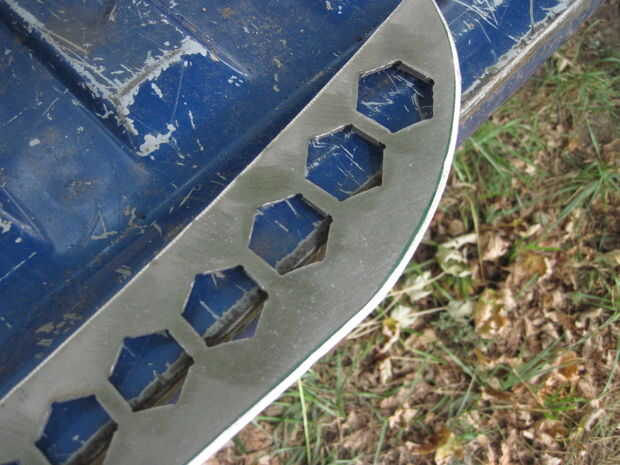 Ahora 1/8 en la espalda es lo que uso para crear una hoja de dullish, así que si decide que desea un comienzo más agudo de hoja marcando más atrás (.25in para sharp regular) y .375in para ultra sharp y luego moler en un ángulo menor posterior. También cuando crear bordes más agudos que resulta útil para ejecutar la hoja piensa un afilador de cuchillos cuando estoy acabado pulido (http://www.harborfreight.com/handheld-knife-sharpener-94620.html).
