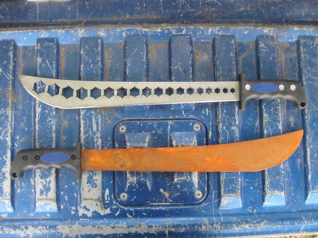 * La última foto es lo que sucede cuando un machete regular y un machete de acero inoxidable mecánica se dejan hacia fuera en la lluvia
