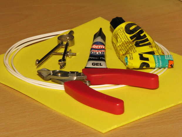 Se necesitan cortadores para cortar el filamento; Cara plana son los mejores dar una superficie plana a los ojos. El cianocrilato (superglue) es mantener el filamento en los agujeros de los ojos.