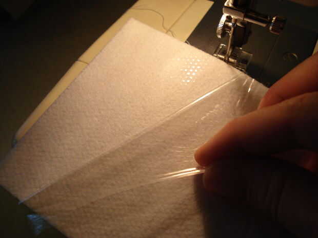 Usar una aguja para tela vaquera ya que la entretela es gruesa. También utilizo un prensatelas para claro por lo que mejor puedo ver mi superficie de trabajo.