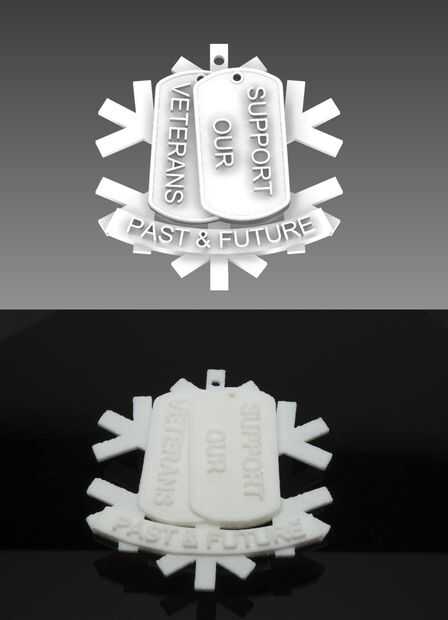 Para honrar a quienes han servido y servirán nuestros militares de Estados Unidos, hemos creado este ornamento de copo de nieve con las 2 etiquetas de perro militares en el centro.
