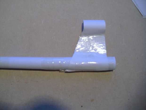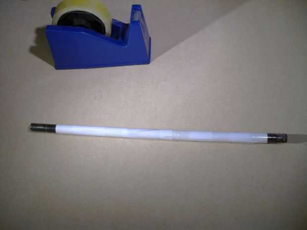 Ahora ponemos el tubo de corte dentro de él y asegúrelo con cinta pero no cinta hasta el final deja algunos por lo que puede la cinta al tubo