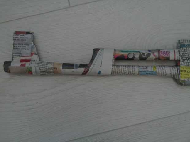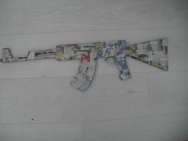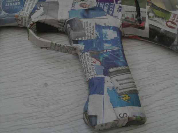 sumergir o pintar la pasta en las tiras de papel de noticias poner el arma muy bien y limpias, hacer un mínimo de 3 capas de papel y deje que se seque
