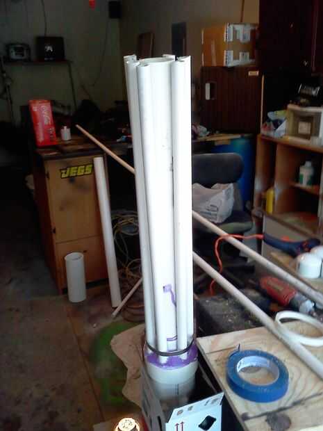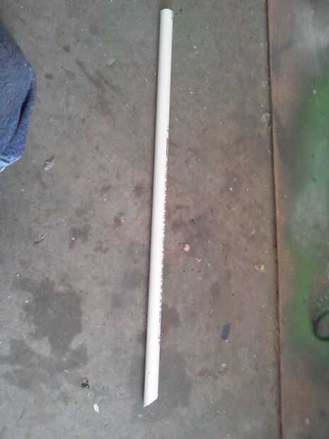 Tomar el tubo de 1/2" y corte a 25" y cortar un extremo con un ángulo de 45 grados. hacer esto 5 veces más. A continuación tienes que pegarlos en la Asamblea y es tarea nada fácil, me pareció más fácil de usar una abrazadera para sujetar los cañones en posición mientras su pegado.