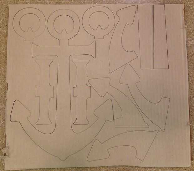 Cortar la primera hoja de las piezas de anclaje.  Gire la segunda hoja de cartón antes de cortar (por lo que el corrugado está funcionando 90 grados de la primera hoja).  Esto añadirá un poco más de fuerza en el anclaje cuando pegue todos juntos.
