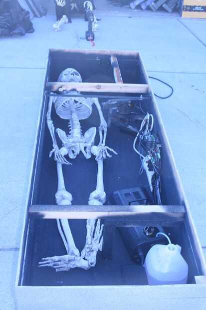 Este es el interior con la tapa apagado.  Soy capaz de todo dentro y hacer los ajustes.  El esqueleto era de la tienda de esqueleto.  Esta fue la versión más ligera de plástico por $49.