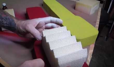 Usé pegamento de caucho para conectar las dos piezas entre sí. Cubrir ambos lados de la espuma y unirlo todo. Terminé usando una tabla para pesar la espuma hacia abajo lo suficiente mientras que el conjunto de cemento. No quería nada demasiado pesado. Un Consejo fue justo.