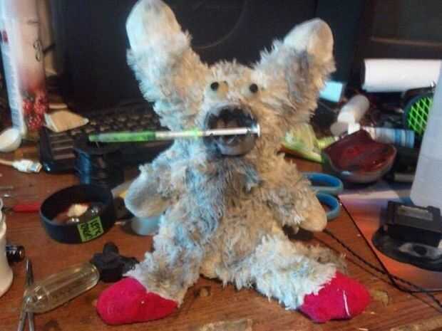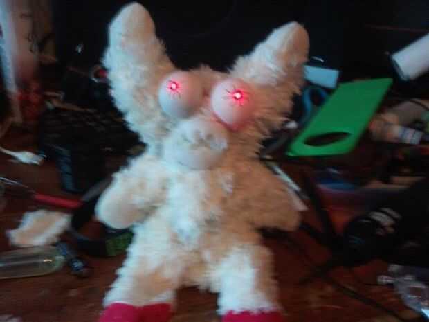 esto se ha hecho para una casa embrujada, ser voluntario en el, se hace de uno de los rap animitronic muñecos que hicieron mucho en la década de 2000, pero se puede utilizar una de las mil muñecas de animitronic que hacen durante las vacaciones. también usé piezas de chuleta de cordero 2 juego a lo largo de los juguetes del perro, el torso de uno entonces a las piernas más baja el torso de la otra. otros menores lo utilicé fueron un uso carrete platic sobre papel reciet, cortar los dientes de él y luego por la mitad para formar las mordazas. los ojos son la parte de atrás sid de los ojos que viene en la muñeca original