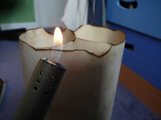 Luego necesitas quemar los bordes para que se vea antigua. Usar un encendedor pero tenga cuidado de no quemarse demasiado. Te recomiendo hacerlo en la cocina, así que usted puede caer en el lavabo si todo va para arriba en llamas.