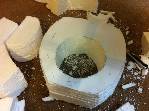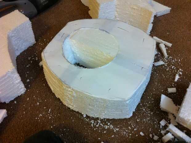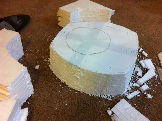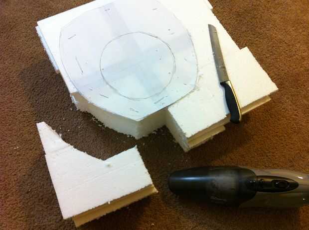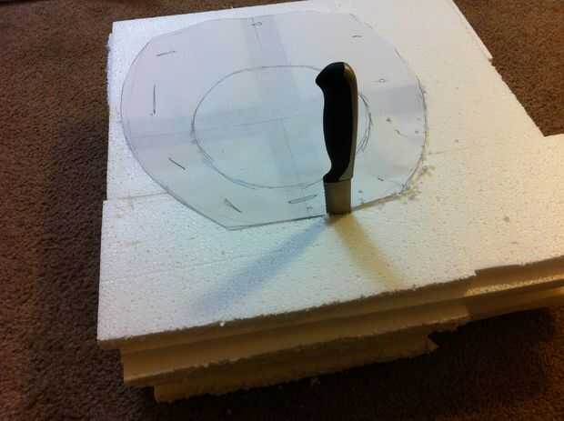 Usé un cuchillo de pan porque era largo y dentado. Una hoja larga era útil para mí porque mi bloque inicial era muy grueso, y el dentado es útil porque 'aserrado' en la espuma es mucho más efectivo que tratar de utilizar la agudeza del borde.