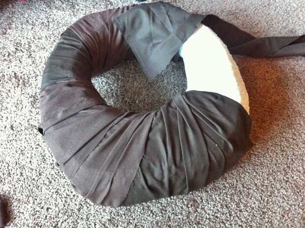 Para la fuerza adicional, podría coser los bordes de cada tira de lado juntos sin capa podría deslizar y revelan el interior de la espuma. Decidí no hacerlo, pero en lugar de otro confiar en la tirantez de mi envoltura a mantener las tiras en su lugar.