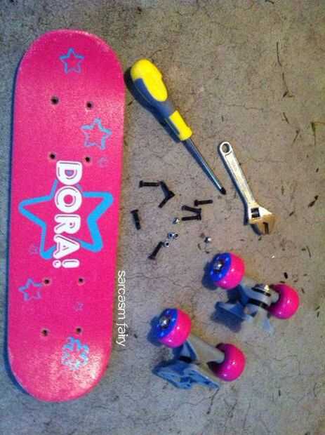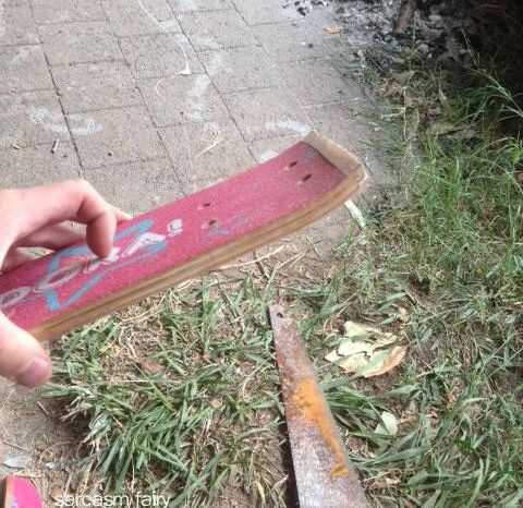A continuación, la marca de donde cortar el borde de la parte posterior de la junta con cinta adhesiva o una línea con lápiz de manera que usted puede cortar con una sierra. Corté justo detrás de donde la Junta empezó a inclinar hacia arriba. Comprobar referencias de alguna imagen de hoverboard como guía.