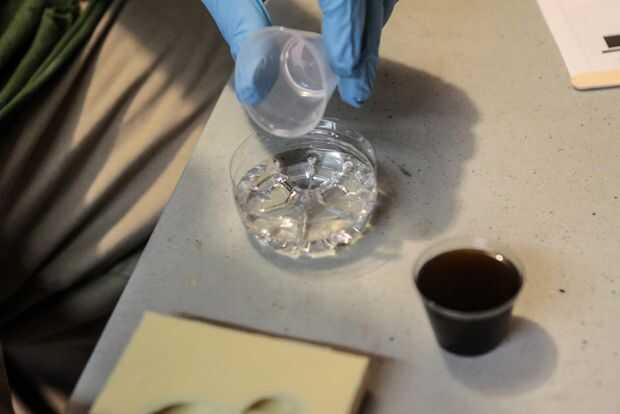 Compramos un kit de bastidor 29 dólar hobby lobby (Alumilite) y después de hacer un molde, es un proceso bastante sencillo. Con bloques de lego, creamos un molde apenas el tamaño correcto para crear una caja para la cabeza entrar. Caucho de silicona fue utilizado para crear el molde (otro kit completo). Dos químicos del kit se vierten son mezclados y luego vierte en el molde.