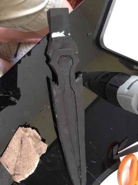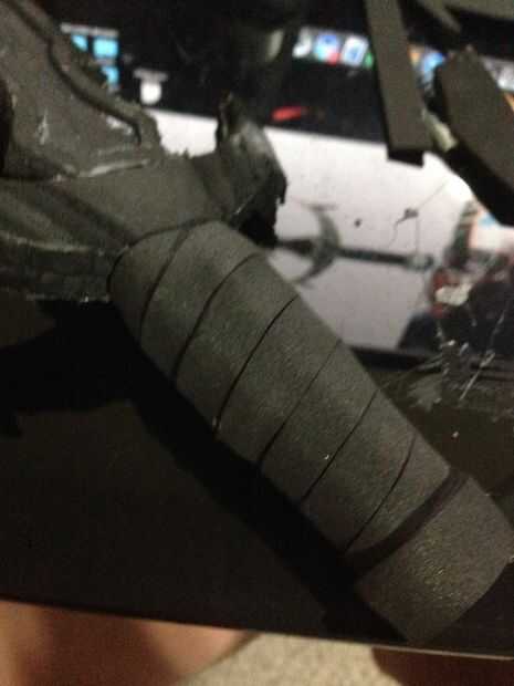 Cortar una o dos tiras largas de la espuma del arte de 1/8 pulgadas y envolver el mango de la hoja.