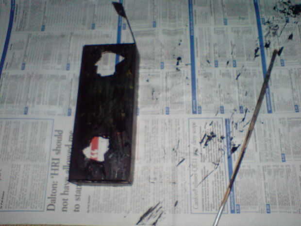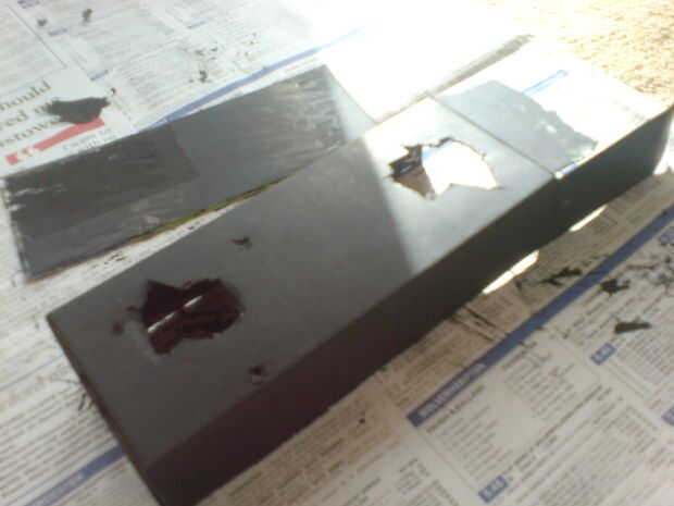 Hay un poco de libertad con esto. Si consigues un diseño de camuflaje que podría terminar muy bonito pero acabo de ir de llano negro. cualquier color que usted elija te aconsejo que al menos una capa de pintura. Para obtener el efecto que quería tuvo tres capas seguidos de retoques. La paciencia es importante como la pintura, una segunda capa antes de que el primero esté completamente seco realmente puede frotar la primera capa significado que tienes que empezar de cero. Recuerde que pintar el rectángulo de la tarjeta que será la parte posterior de la radio y la pluma antigua para la antena si es necesario también.