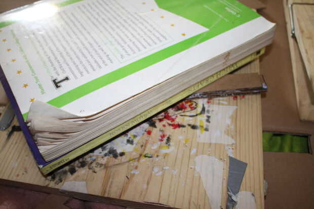 lo que necesita: limpiapipas, pintura rojo, secador de pelo, pequeño rodillo de tocador, papel de aluminio.Paso 1: Corte el cable pelo secador.Paso 2: Cortar papel higiénico en triángulo y enróllelo para arriba. Entonces lo conecte al lado de golpe d