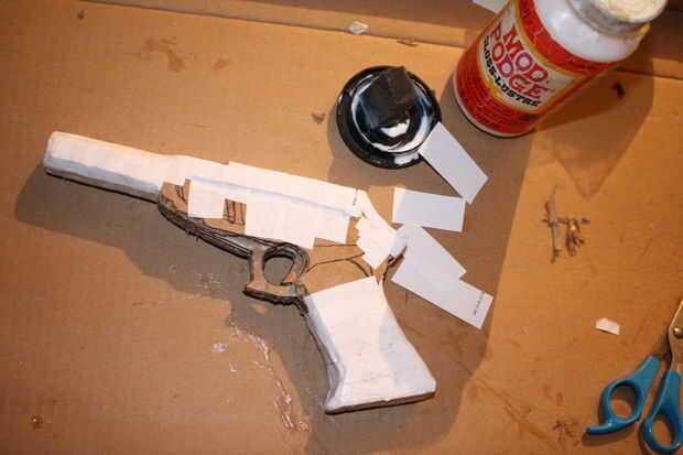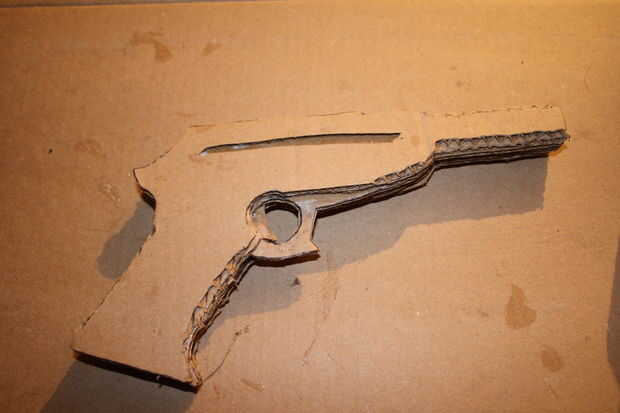 esta pistola parece un poco a la pistola de rayos de Call of Duty: World at War. se utiliza un sistema de eje de balancín para el gatillo y es muy precisa a cerca de 20 a 30 pies dependiendo de cuántas gomas tiene en él.Paso 1: mango Paso 2: barril