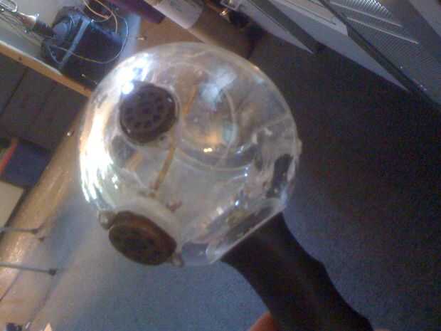 La cabeza de lectura de un disco duro se utiliza como un guardamonte y un agujero fue cortado para así.